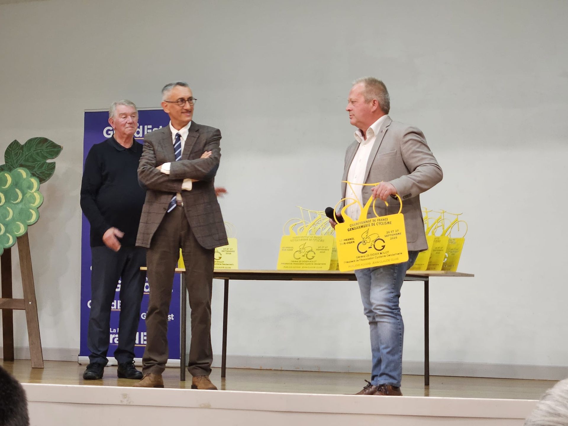 Volonté de nos amis champenois de nous accueillir avec l’élégance de leurs bulles à la fragrance inimitable pour faire oublier aux coureurs la pluie du vendredi, le froid et le brouillard du samedi matin avant l’éclaircie du samedi après-midi. Merci au président Dominique BABE d’Union Champagne, merci, mon cher Pierre DESANLIS, pour avoir parrainé le Grand Prix de la Montagne et nous avoir « réconforté » si dignement lors de la soirée de gala.